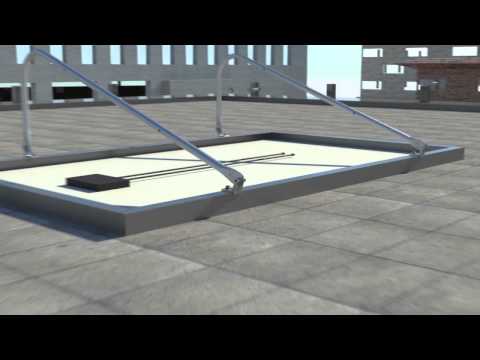 Het oppervlak moet minstens 360 x 120 cm zijn, met 20 cm ruimte langs de dakranden. Uiteraard kunnen de panelen ook op een open terras of in de tuin geplaatst worden. Wij adviseren om minstens 25 tot 30 kg ballast per paneel te voorzien, zodat alles stevig blijft staan en correct blijft functioneren, zelfs bij zwaardere windvlagen.